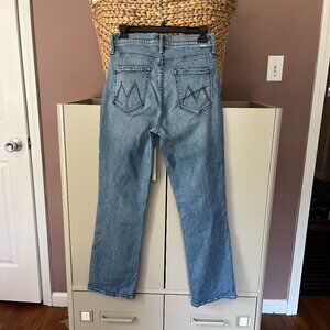 Mother button-fly, high-waist jeans in light wash in good used condition; only worn a few times (my second strike-out with Mother jeans). Size 28. Measurements taken while jeans were laying flat: 14" waist; 15" hips; 11" rise; 27.5" inseam