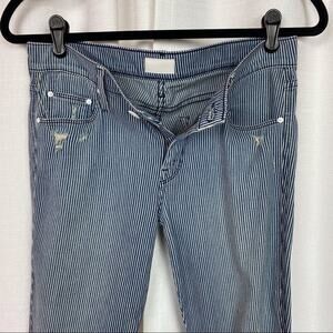 Mother The Vamp Blue&White Stripe On The Road Destroy Wash Cropped Ankle Jeans Sz.27