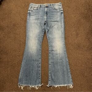 Size 33, great condition besides one small thread pull on back, mid rise flare, has some stretch