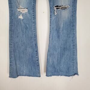 Mother The Weekender Fray Flared Jeans Dreamer Blue Denim Stretch USA Size 27