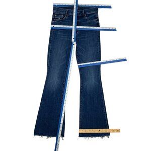 Mother The Weekender Fray Jean 27 Teaming Up Blue Mid Rise Flare Leg Zip Fly