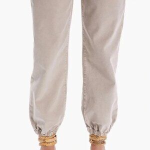 High-waisted straight-leg pants with elastic cuffs at the ankle and oversized patch pockets. Crafted from a cotton blend in a sepia-tone hue, the pants feature a touch of stretch and tonal hardware.