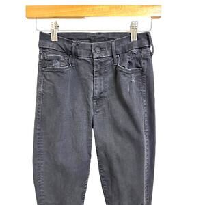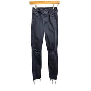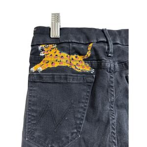 Mother The looker ankle fray black distressed jeans leopard size 24