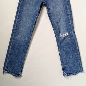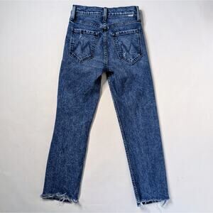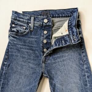 Mother Tomcat 24 Blue High Rise Distressed Straight Raw Hem Denim