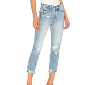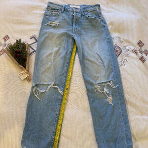 Made for the tomboy at heart: The Tomcat by MOTHER. Straight leg, high-waisted styling meets a must-have vintage wash that gains cool edge with intentional rips and distressing.. 98% cotton 2% elastane. Button fly. Light fading and whiskering with distressed detail. 14" at the knee and 14" at the leg opening. Made in USRevolve Style No. MOTH-WJ615. Manufacturer Style No. 1364-259.