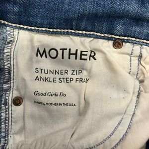 This listing is for a - Mother Women Stunner Zip Ankle Step Fray Blue Denim Jeans Size 24
