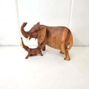 Mother and Baby Elephant Wood Sculpture Handmade in Kenya