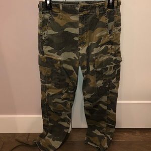 Slightly baggy mother cargo style camo print pants with cargo pockets