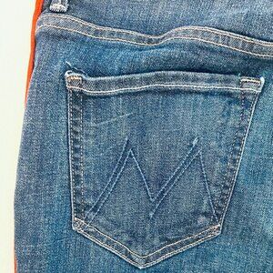 Mother jean Women's 28 blue Insider Speed Racer crop step fray high rise luxury