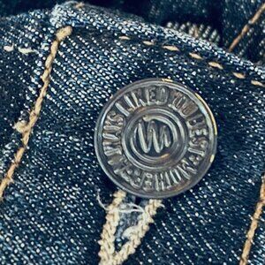 NOTE: These jeans have been hemmed using a leg seam set below the knee on each leg so as to retain the iconic frayed step hem of the Speed RAcer Crop style. See photos above and inseam measurement below. This pair could be perfect for you if you always need to hem your jeans!!