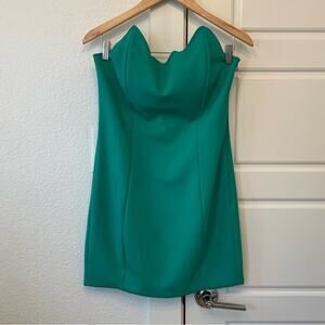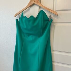 Scallops ripple along the strapless neckline of a party-ready dress rendered in a vibrant hue. See last pics for superficial dust/drag marks.