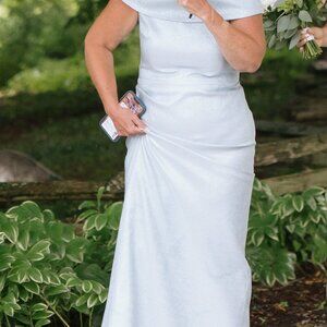 Teri Jon Mother of Bride Dress - only size 14 was available in store, altered to size 10. I am 5'8', 160lbs. Light blue metallic.