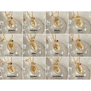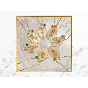 Mother of Pearl - Birth Flower Necklace - Birth Month Jewelry - Botanical Jewelr