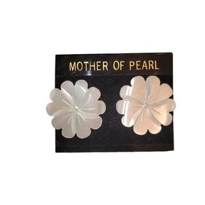 Mother of Pearl Floral Design Earrings 28 mm dimensions White NWT