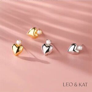 Mother of Pearl Heart Stud Earrings in gold & Silver. 925 Sterling Silver. $1039