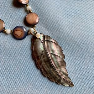 Mother of Pearl Leaf Dangle Necklace Earthy rustic