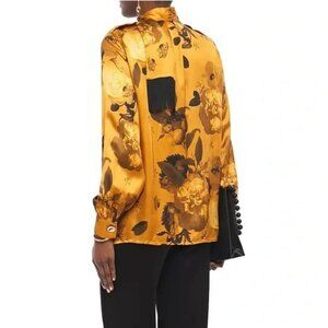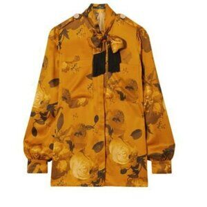 Mother of Pearl Leandra Tie-neck Rust Floral Satin Blouse - flawed