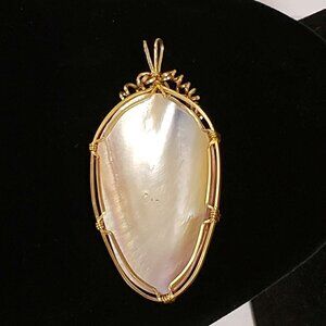 Mother of Pearl MOP Shell Pendant Gold Wire