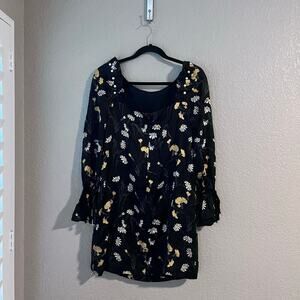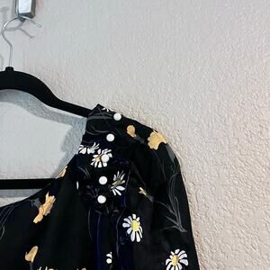 Mother of Pearl Savannah Silk Black and Gold Bishop Sleeve Cocktail Dress 4