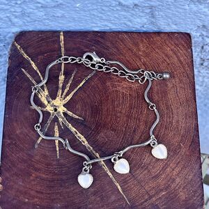 Mother of Pearl Sterling Silver Heart Anklet or Long Bracelet Ankle