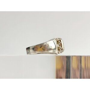 Mother of Pearl Sterling Silver Vintage Cabochon Minimalist Ring - sz 8.25