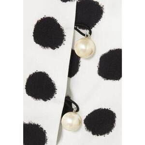 The Tara Camisole by Mother of Pearl is a sustainably sourced statement piece made in Portugal from 100% Lyocell. Featuring bold black polka dots on crisp white, faux pearl buttons down the front, and a slightly loose silhouette, it’s designed for layering under tailored blazers or standing alone with wide-leg trousers. Scoop neckline, delicate straps, and a no-frills ethos that speaks volumes. $295 retail.
