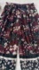 Black floral print (100% polyester). Pants. Front drawstring waist. Non elastic waist. Grosgrain ribbon.