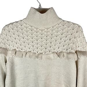 Mother of Pearl Wool Blend Turtleneck Knit Sweater Cream Color Size Medium