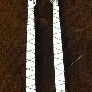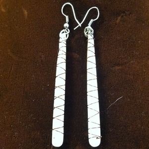 Mother of pearl and copper wrapped drop earrings silver wire posts 3 .25 drop including wire by Roost