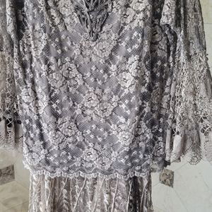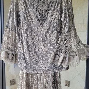 This beautiful lace MOB outfit is a stunner! vintage lace blouse, skirt and lace shawl shown belted.