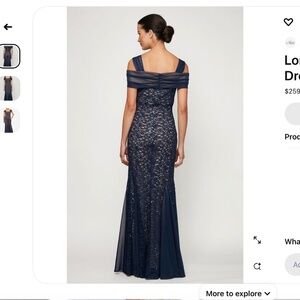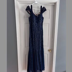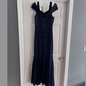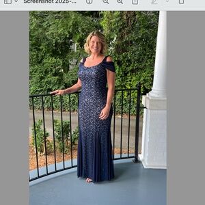 Beautiful, flattering navy dress. From website "Long lace gown with cold shoulder detail and flirty godet skirt make this style the perfect choice for galas and black tie events." Excellent condition. Worn once.