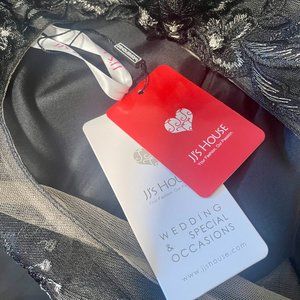 Black, A-line Scoop Illusion Floor-Length Chiffon Lace Mother of the Bride Dress With Cascading Ruffles. New with tags.