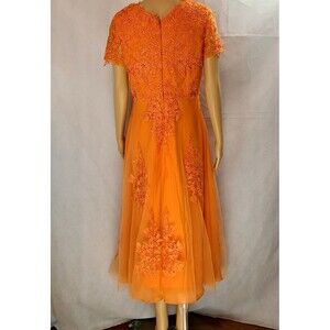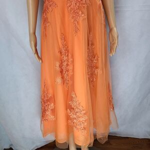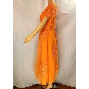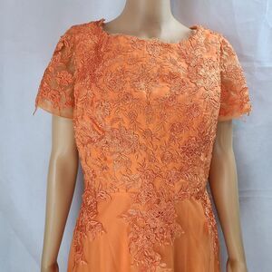 Mother of the Bride/Formal (10) Orange Embroidered Short Sleeve Maxi Dress