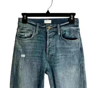 Surprise! MOTHER's signature back pocket just got lit up. Her straight button fly skinnies have a vintage silhouette and distressing.
