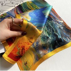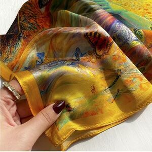100% mulberry silk scarf that is soft, smooth, and of high breathable. Versatile scarf that can be used as a head wrap, shawl, neck or waist tie.