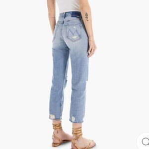The most loved MOTHER superior style! The MOTHER Superior capsule launched in 2017 using men’s jeans, patterns and fabrics for a "borrowed from the boys" look. High rise, button fly jean in a relaxed fit, vintage-inspired wash and distressing. Holier Than Thou patch included.