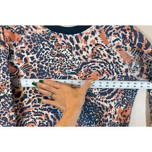 Fun Mother The Square leopard sweatshirt. Navy trim with navy, coral and white. White stitching. Lightweight and season-less.