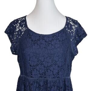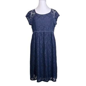 Motherhood Dress Womens Size M Navy Blue Lace Maternity Stretch Delicate Elegant