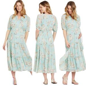 Motherhood Floral Tiered Midi Dress, Mint Green, M