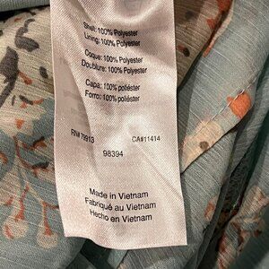 This lined floral maternity dress features a round split neck with ties, raglan short sleeves, a soft fabric belt to adjust the shape, and a tiered flounce skirt. Excellent condition, mint green chiffon floral, washable, size medium