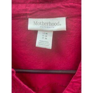 Motherhood M Fuchsia Pink Long Sleeve Ruffled Collared V-Neck 1/2 Button Shirt.