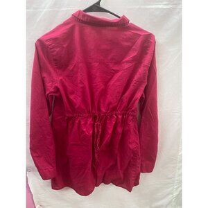 Motherhood M Fuchsia Pink Long Sleeve Ruffled Collared V-Neck 1/2 Button Shirt