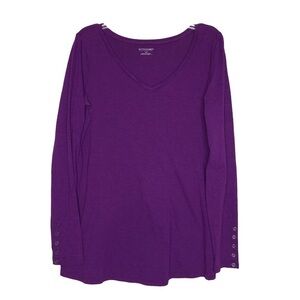 Motherhood MATERNITY Purple Long Sleeve Button Cuff V-Neck Knit Top - Size Small