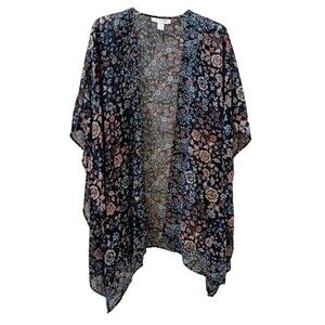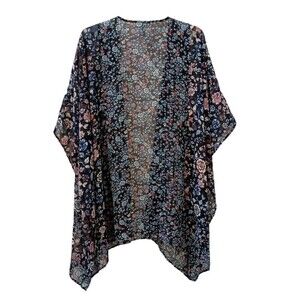 Motherhood Maternity 1X Floral Sheer Kimono Boho Navy