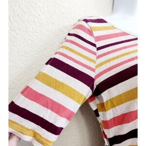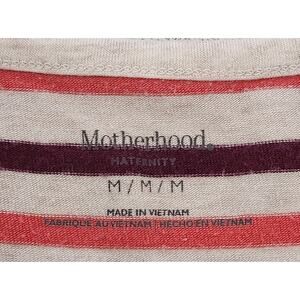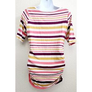 Motherhood Maternity Beige Pink Yellow Striped Top Medium Ruched Sides Stretchy