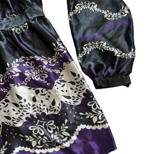 Motherhood Maternity Black Purple Floral Satin Blouse L