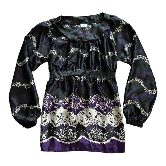 Motherhood Maternity Black Purple Floral Satin Blouse L