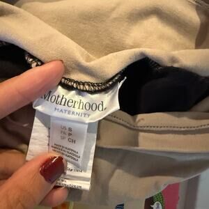 Motherhood Maternity Black Striped Abstract Leggings Pants Over Belly Support