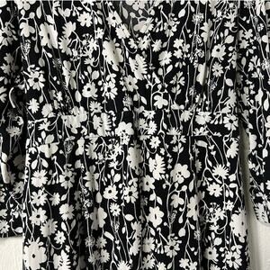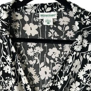 Stay effortlessly stylish and comfortable with this Motherhood Maternity black and white floral wrap dress, size Large. Designed with a flattering V-neckline, adjustable wrap waist, and soft stretchy jersey fabric for a perfect fit throughout pregnancy and beyond.