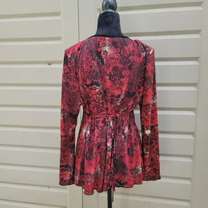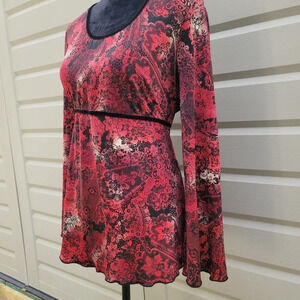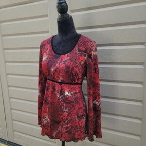 Motherhood Maternity Blouse Red Black Stretch back belt floral XL